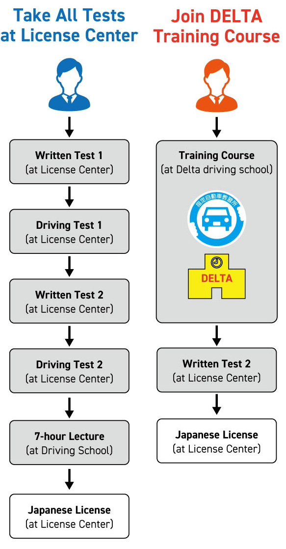 Delta driving school is approved by Kyoto Public Safety Commission (京都府公安委員会). If you complete our training course, you will receive the certificate of graduation (卒業証明書). If you have a valid certificate issued by our school, you are exempt from the in-car tests at a driver's license center in the prefecture you live.